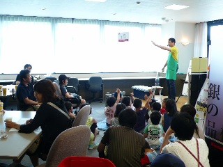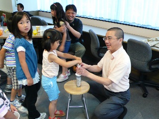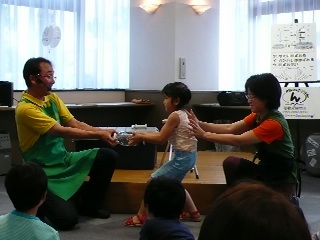 「大通街なか劇場」というイベントで大道仮説実験を行ないました。 1時半から4時まで,大道仮説実験〈ころりん〉とピコピコカプセルづくり 「バンジーチャイム演奏会」を行ないました。 イベントに来られた方を呼び止めながらの,まさにストリートライブ状態です。 講師は小出さん,樋栄さん,そしてワタクシ祖父江です。 【写真提供:祖父江】 今回,ひさびさに自分も講師をしました。やっぱりお客様の笑顔は嬉しいですね! ほとんどのお客様が最後まで見て下さっていました(^^) ストリートライブ形式でもピコピコカプセルづくりが大人気だったのは驚きでした。 お母さんが感動して人を集めてくれたりスゴかったです!