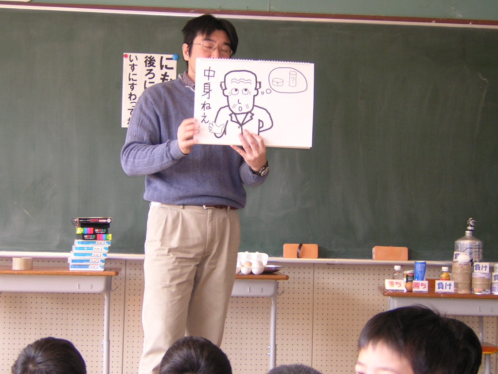 栗原さんが大道仮説実験〈ころりん〉をやりました。 参加者は小学校1年~6年までの20名と 親も5名ほどいらっしゃったそうです。 フリップブック ↓ 紙芝居(B面だけ) ↓ ものづくり:ピコピコカプセルとピコピコカプセル版 と,この流れで1時間30分くらいかかったそうです。 やっぱりこうした機会にちょうどいいくらいなんですね(^^) 今回は新しくなったフリップブックと紙芝居ブックを はじめて使ってみたそうです。なんでも紙芝居のB面が 〈ころりん〉の魅力が出ていて良かったそうです。 さりげなく後ろの転がったモノ達に「勝ち」「負け」の札がついていて 実験結果が分かりやすく工夫されていますね~。 こういうのいいですね。 |