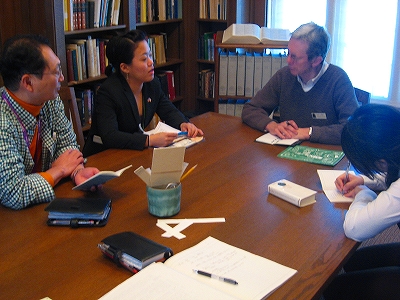 「衣食足りたら〈他人の笑顔〉研究会」が行なわれました。 変わったタイトルですが,「衣食足りた時代」=成熟経済時代の ものの見方・考え方を勉強していこうというものです。 今の日本のように,物質的な欲求がかなり満たされた社会では, それ以上着たり食べたりしても,あまりたのしくありません。 それよりも〈他人の笑顔〉を求めていくようになるのです。 (板倉聖宣『発想法かるた』より) 私たち楽知ん研究所の場合は,〈たのしい科学〉の世界をとおして, お客さんの笑顔を生み出していくということです。 そしてこれから,さまざまな分野で〈他人の笑顔〉を 生み出していく活動が,一層さかんになるでしょう。 このような〈成熟経済時代〉を心豊かに生きていく上で 〈長期投資〉は,大切な道具になると考えています。 そんな,これからの社会や生き方のイメージを 思い描くための勉強会です。 (このあたりはこちらをご参考ください) 講師は,楽知ん投信㈱の秋田総一郎さんと西生智久さんでした。 午前10時から夕方4時半ころまで,ほぼ1日がかりの会だったそうです。 〈私益と公益〉〈お金の流れは社会をつくる〉〈長期投資〉 といったキーワードから広がる話題を, 参加者7人と講師がヒザを交えてじっくり語りあいました。 会の終了後参加者の方々が記入したアンケートでは, 全員が「5」(たいへんたのしかった)の点数だったとのこと。 なかなかスゴイですね~(^^)とても充実した会だったようです。