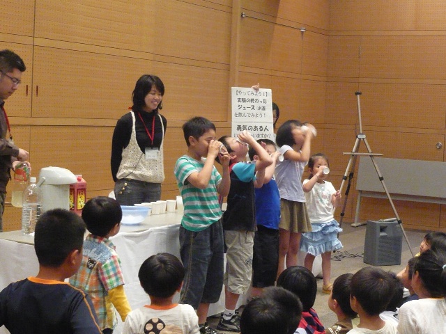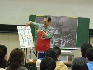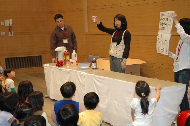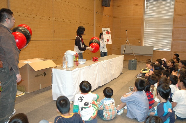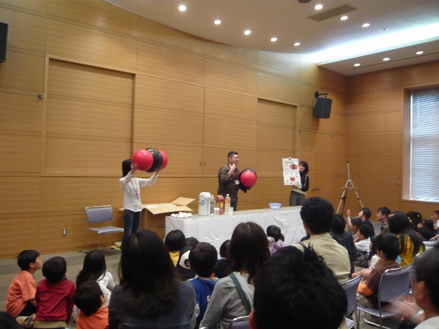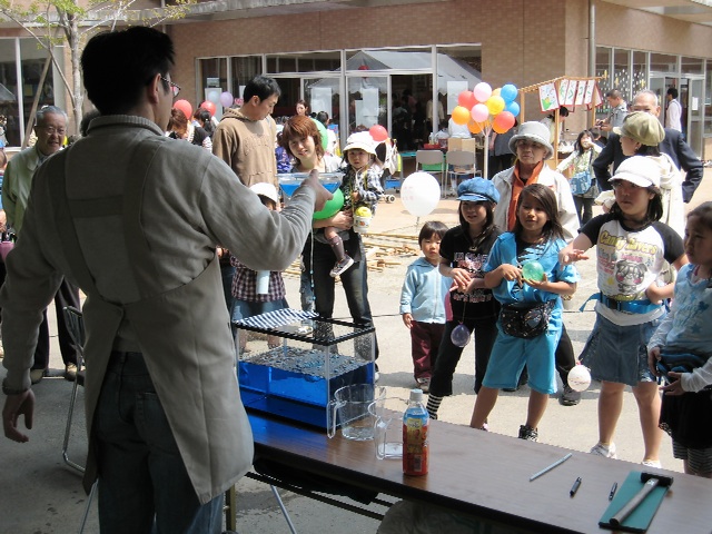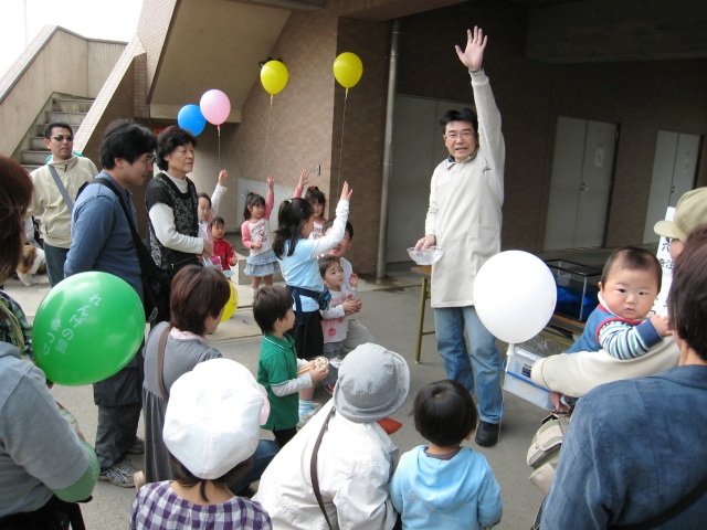から,また大道仮説実験の報告が届きました。 いやぁ嬉しいですね(^^) 5月5日(日),長崎市科学館で進藤さんが,3人の大学生 の方達と〈モクモク〉をやりました。 三回の実演で,300人ほどの方が参加されたとのこと。 満員御礼って感じですね〜。すごい!!! 【写真提供:進藤隆彦さん】 PR