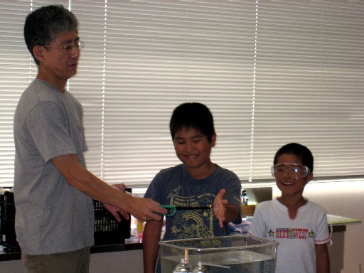 なんと参加者240人というものすごい規模だったみたいです。 この体育館いっぱいのお客さんの写真は圧巻ですね!! フリップの途中途中で体験してもらう部分をつくって,30~40人ずつ 6ヶ所に分かれてやってもらったそうですが,ドライアイスが10キロも あっても足りなくなりそうだったとか(^^; 助手として参加していた木村さんのブログにもこの記事が載ってい ます。興味のある方はそちらもどうぞ。 PR