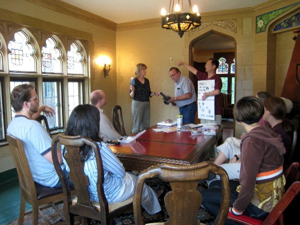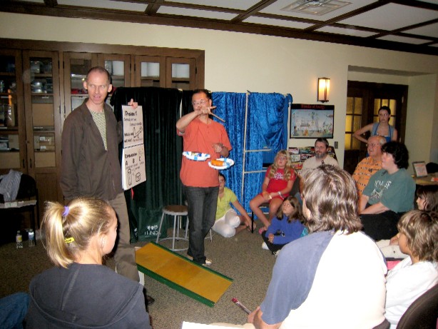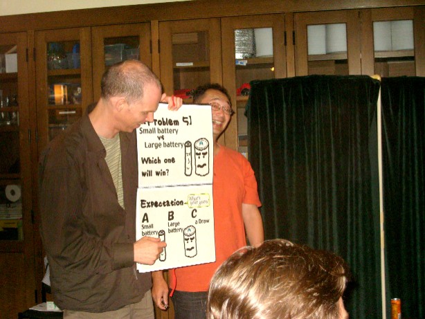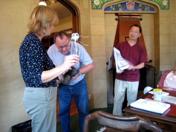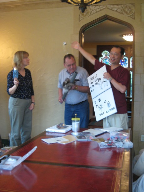 バッケン博物館に留学しに行きました。 この博物館は心臓のペースメーカーの改良・販売で財をなした アール・バッケンさんの設立した民間の博物館で,1700年代の 静電気実験などの資料がとても充実しています。 建物も,古い素敵な邸宅を利用したもので,とっても優雅な 感じです(^^) 宮地さんの滞在は2週間ほどでしたが,何度か博物館の中で, 大道仮説実験をやる機会があったそうです。 真夏でも乾燥していたので,〈びりりん〉は絶好調だったとか。 〈GO! ROLLING〉=英語版〈ころりん〉は,カタコト英語で話して も,笑いも混じっていたみたいですが,通じていたみたいです(^^; このとき助っ人をしてくださった現地のジムさんに感謝ですね。 お客さんの反応も出てくる理由も日本とほとんど同じだったそう です。日本人もアメリカ人もこういう所の考え方は同じなんですね~。 ちなみにピコピコカプセルも大好評だったそうです(^^) |
