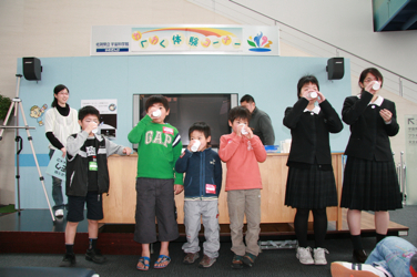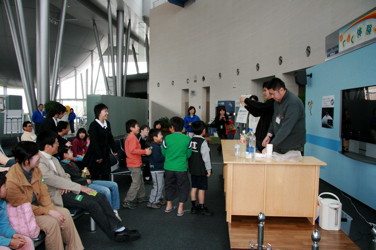 から,また大道仮説実験の報告が届きました。 いやぁ嬉しいですね(^^) 5月5日(日),長崎市科学館で進藤さんが,3人の大学生 の方達と〈モクモク〉をやりました。 三回の実演で,300人ほどの方が参加されたとのこと。 満員御礼って感じですね〜。すごい!!! 【写真提供:進藤隆彦さん】 PR